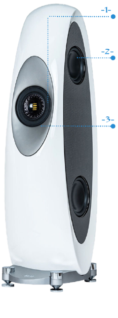 fliehende Schallwand ohne jegliche Kanten ermöglicht ein optimales Abstrahlverhalten und bildet zudem die Grundlage für einen perfekten Frequenzgang.